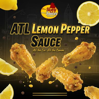 Skacy Sauces ATL Lemon Pepper Sauce is a bold, Atlanta‑style lemon pepper “wet” sauce that brings buttery richness, bright citrus, and a punch of pepper to anything fried, grilled, or roasted. Inspired by classic ATL lemon pepper wings, it’s crafted to give you that same craveable, tossed‑in‑the‑bowl flavor straight from the bottle at home.atl